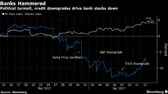 Banks happen to be finding your way through the downgrades, and even Gordhan’s removal, since Zuma roiled markets when he fired former Finance Minister Nhlanhla Nene in December 2015, said Neelash Hansjee, banks analyst at Old Mutual in Cape Town.