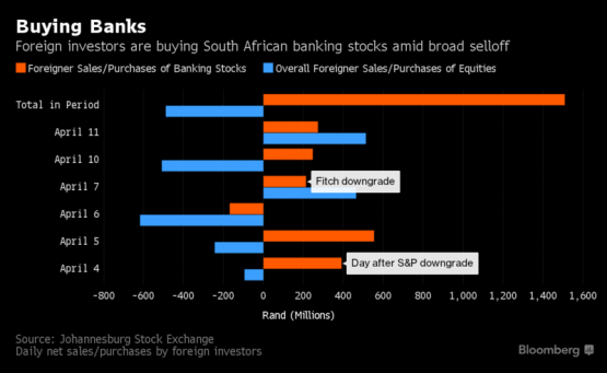 Foreign investors are already snapping up South African banking stocks, enticed by way of the cheapest valuations relative to emerging-market peers since 2011, even while the nation’s downgrade to junk deepened a vast equity selloff.